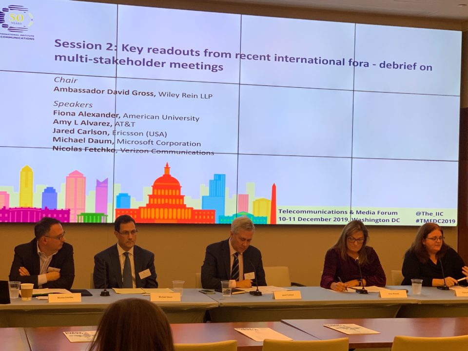 The Winter TMF in Washington was the last event of the IIC’s ‘50 years’ celebrations, bringing the key themes of the Communications Week to North America. Participants were greeted with a welcome keynote by Kathy Grillo, Senior Vice President, Public Policy and Government Affairs, Verizon International, who highlighted the link between the FCC’s drive towards faster and simpler policy and the USA’s global lead in 5G deployment.
