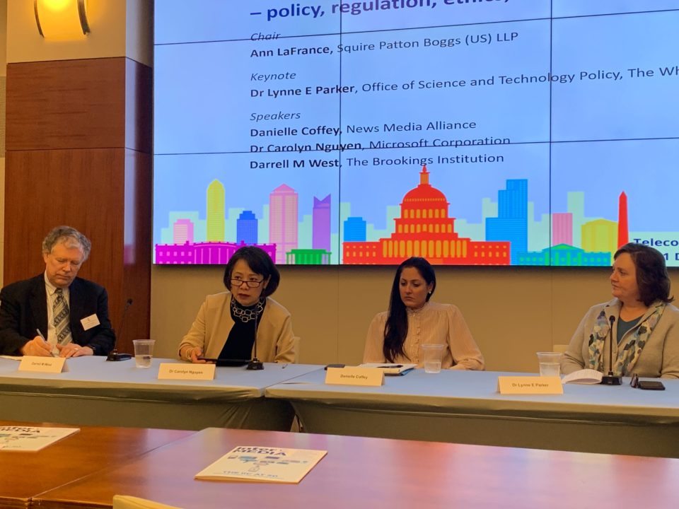 Dr Lynne E Parker is Assistant Director for Artificial Intelligence (AI) at the White House Office of Science and Technology Policy (OSTP). In this role, she is the White House lead for AI policy, and engages with numerous stakeholders to accelerate advances in AI for economic growth, improved quality of life, and national security. Dr Parker helped lead the development of President Trump’s Executive Order establishing the American Artificial Intelligence Initiative, which bolsters research, governance, and education and workforce training around AI. She is now overseeing the implementation of this Initiative and many other related AI actions.